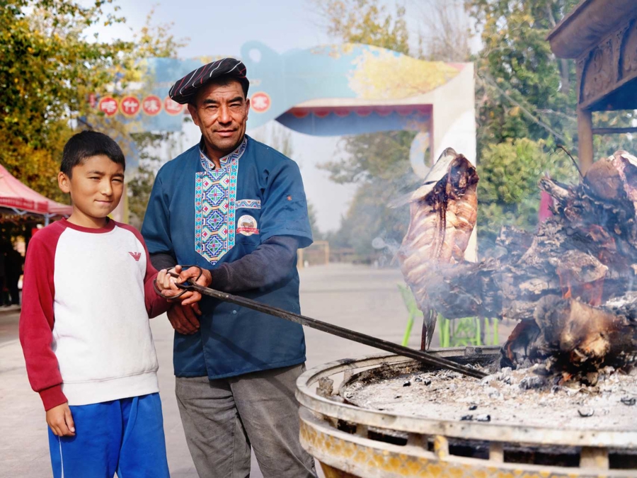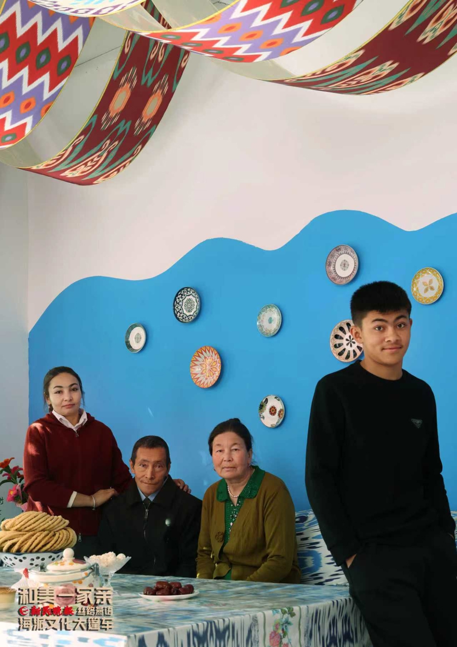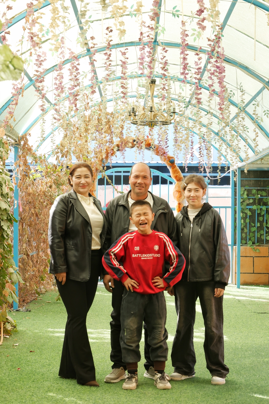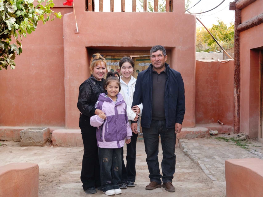 图为泽普县金胡杨长寿村的阿迪力·图尔荪一家。