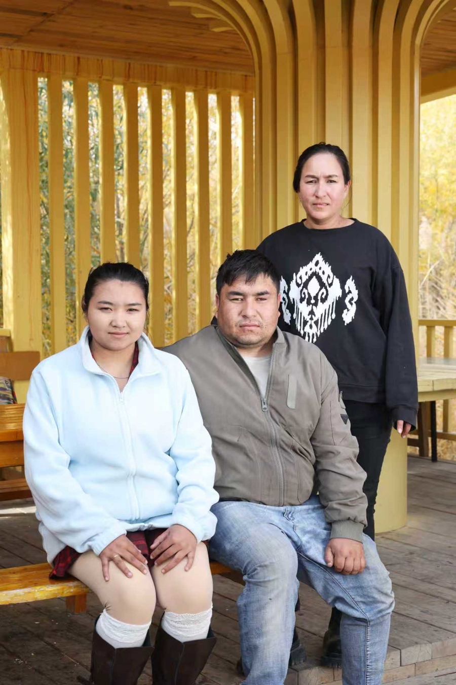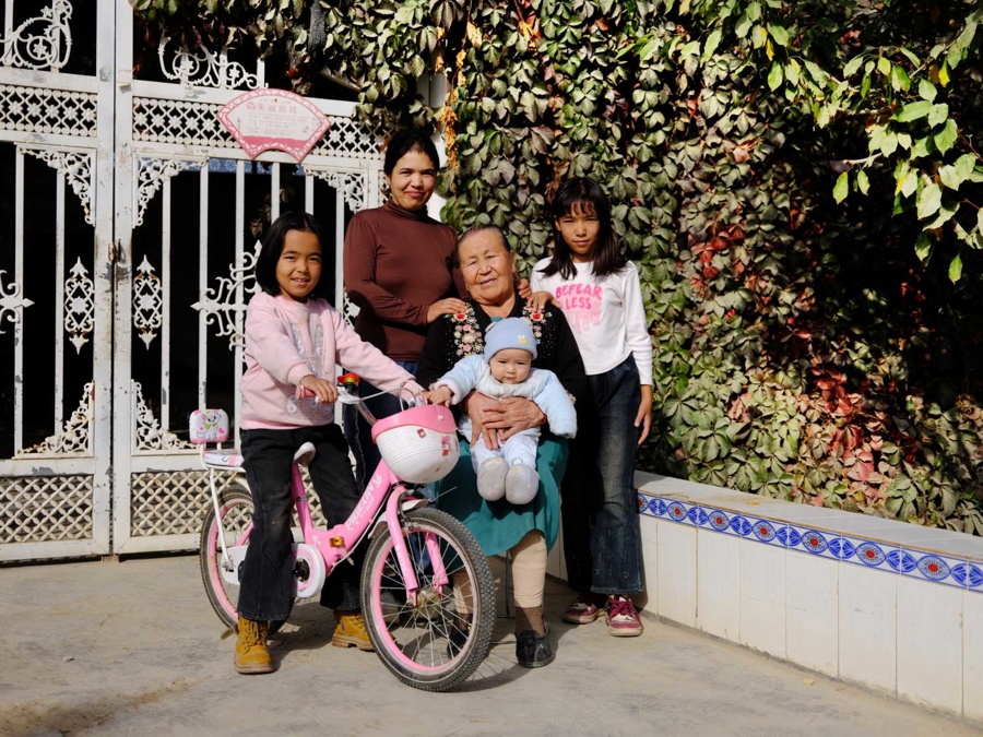 图为泽普县金胡杨长寿村的图尔荪阿依一家。