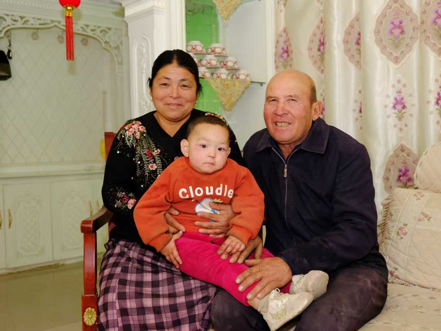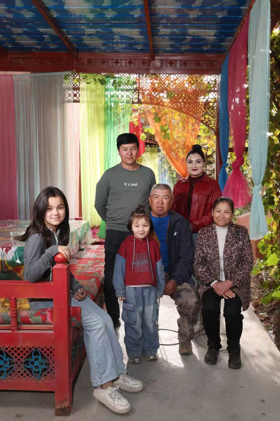 图为泽普县赛力乡荒地村的阿瓦汗·萨依木一家。