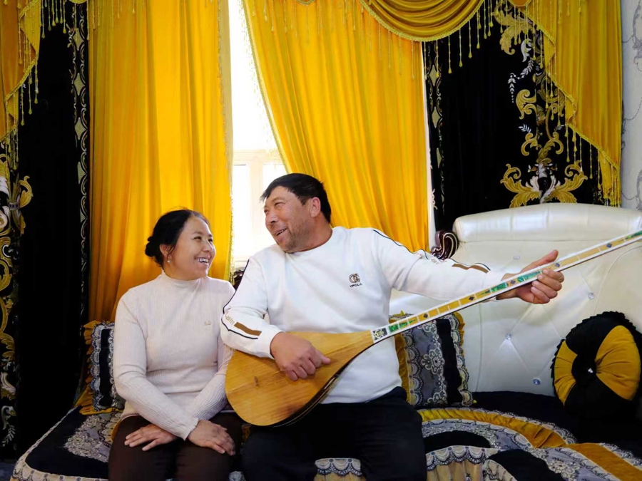 图为泽普县金胡杨长寿村的阿卜杜如苏力·安外尔一家。