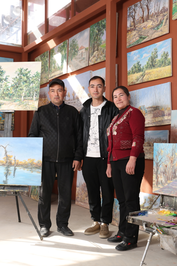 10月25日至26日,新民晚报“丝路燕语·海派文化大篷车”驶入上海对口支援的泽普县。在赛力乡荒地村、金胡杨长寿村,我们为村民们拍摄了全家福,并当场打印、裱框赠送南平期货配资,用镜头记录下村民新生活、乡村新风貌。\n图为泽普县赛力乡荒地村的阿不来提·吐逊一家。