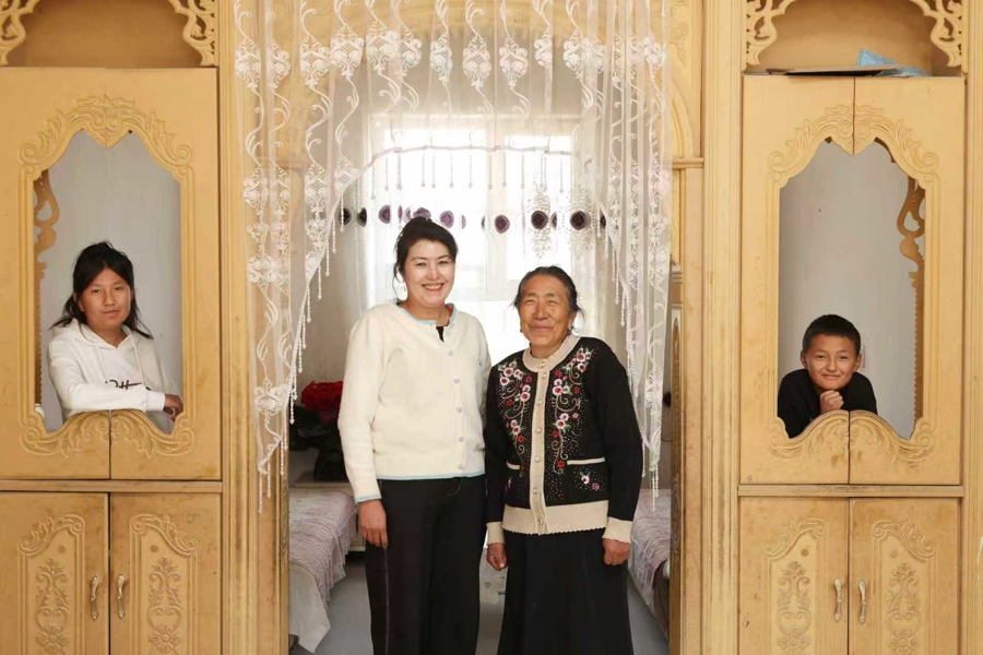 图为泽普县金胡杨长寿村的图妮萨古丽·奥斯曼母女。