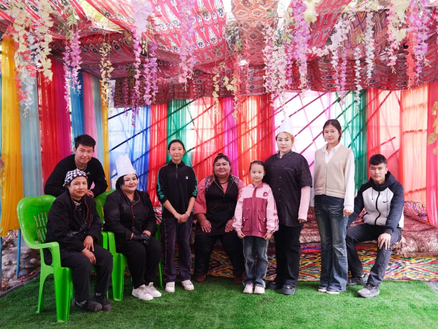 图为泽普县金胡杨长寿村的阿尔祖古丽·艾海提一家。