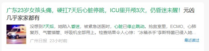 2025年底,一次轻微的头痛彻底改变了深圳23岁张小小(化名)的命运。她本以为只是劳累,却未料到这竟是致命的“冰箱杀手”——李斯特菌发起的猛烈攻势。