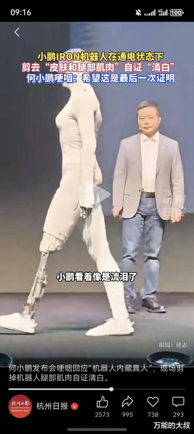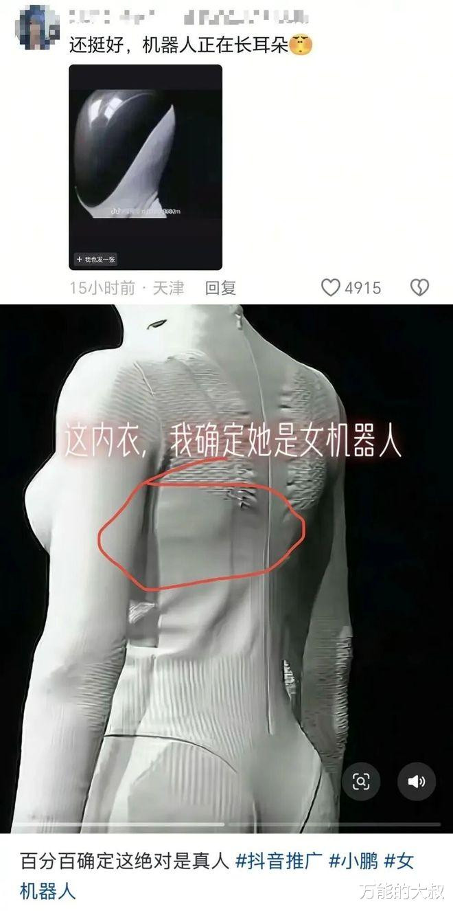 但小鹏希望给自己贴上“最拟人机器人”的标签,与被网友质疑“真人穿皮衣”,其实是一致的,因为太逼真了,太拟人了,以假乱真了。