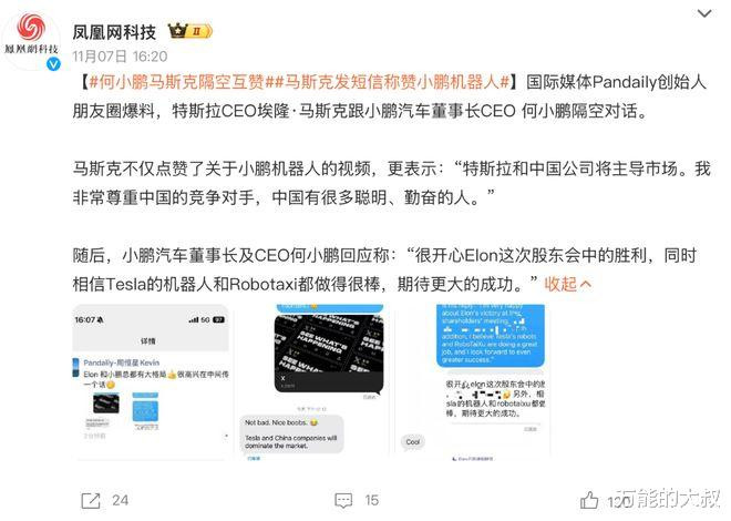 就连马斯克都给何小鹏点赞!