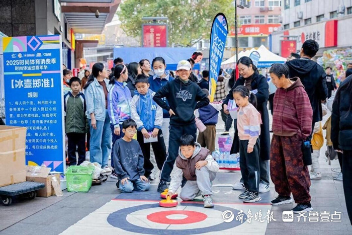 活动全程免费向公众开放,设置了多项潮流与趣味兼具的互动项目,如飞盘投掷、冰壶掷准、匹克球和棒垒球体验等。从朝气蓬勃的青少年到精神矍铄的长者,众多市民和游客在这个开放的城市客厅中轻松参与运动,切身感受运动的快乐。奖励机制也极大激发了大家的参与热情,现场笑声不断,掌声与喝彩此起彼伏,向阳路步行街俨然成为一个充满活力的“开放式城市运动公园”。